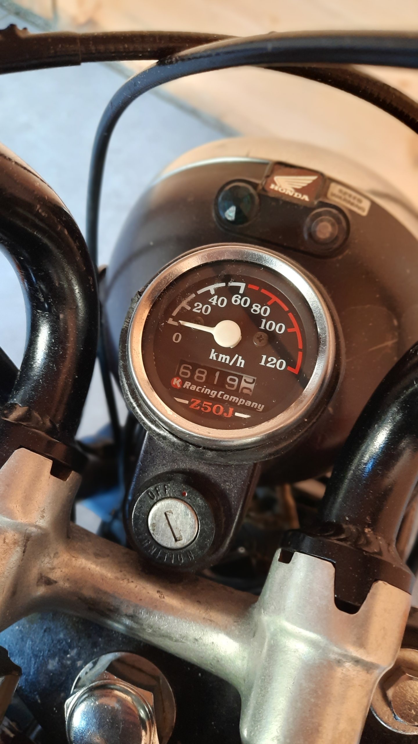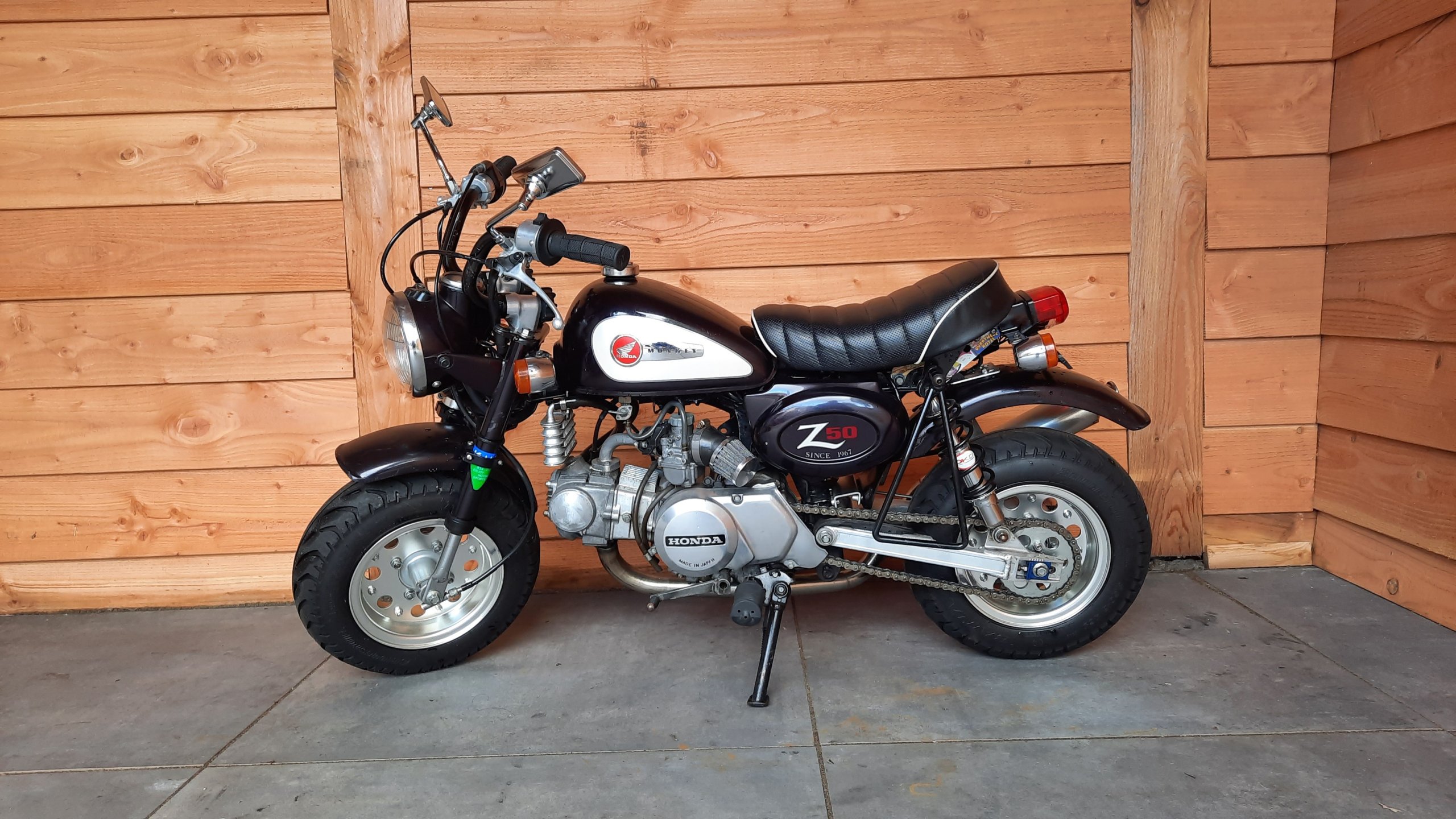 Honda Monkey Z50J Voertuigspecificaties Merk Honda Model Monkey Prijs € 2.995,- Kenteken ….-……-…. Kilometerstand 6.800 km Carrosserie Minibike Bouwjaar ….-…… Kleur RP150 Techniek Cilinderinhoud 49 CC Aantal Cilinders 1 Vermogen 2kW / 2.6PK Gewicht 58 kg Extra’s– Takegawa Uitlaat– Conische Luchtfilter– Externe Oliekoeler– Daytona Verstelbare Stuurdemper– Opbergtas